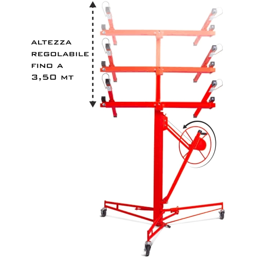 Sollevatore Per Pannelli Alzalastre Per Cartongesso Professionale Con Certificato CE Portata Di 68 Kg Pieghevole Regolabile In Altezza XXL 140 - 350 cm Altezza Di Lavoro Alzapannelli Rosso