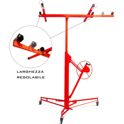 Sollevatore Per Pannelli Alzalastre Per Cartongesso Professionale Con Certificato CE Portata Di 68 Kg Pieghevole Regolabile In Altezza XXL 140 - 350 cm Altezza Di Lavoro Alzapannelli Rosso